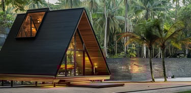 Tent Home is a minimalist teakwood house from Sumatra, inspired by the shape of a tent and the philosophy of nomadic freedom.