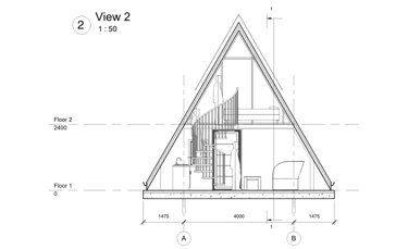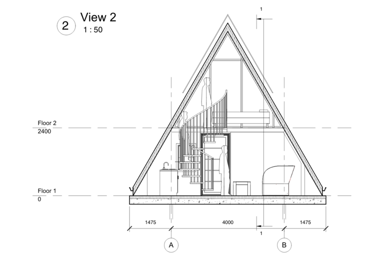 Design: high beams, sloped roof, spacious and airy feel